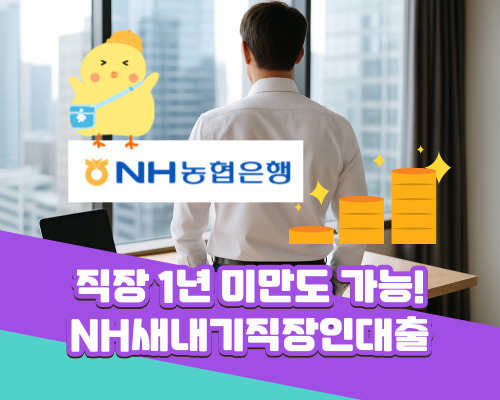 항목 내용 대출명 NH새내기직장인대출 대상 신입사원, 취업 1년 미만 직장인 한도 최대 3천만 원 금리 연 4%~6%대 (우대금리 적용 시 인하 가능) 상환 방식 원리금균등 / 원금균등 / 만기일시상환 등 신청 방법 농협 앱 or 영업점 방문 (비대면 가능) 특징 빠른 승인, 간편 서류, 거래 실적 우대혜택 이 상품은 대출에 익숙하지 않은 사회 초년생들이 가장 편하고 빠르게 접근할 수 있는 상품 중 하나입니다.