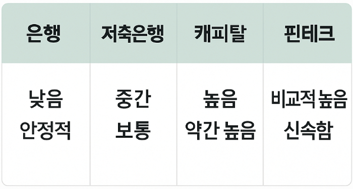 특히 은행 vs 저축은행 vs 캐피탈 vs 핀테크 사이의 심사 기준은 완전히 다르기 때문에, ‘어디에 지원할 것인가’가 전략의 절반이에요.