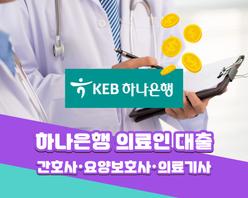 “하나은행 의료인 대출은 자격증과 소득만 잘 증빙하면 사회초년 의료직 종사자도 우대금리로 가능!”