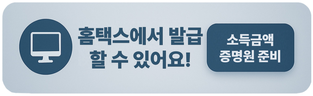 홈택스에서 ‘소득금액증명원’, ‘납세증명서’를 미리 준비해두면 훨씬 빠르게 진행돼요.